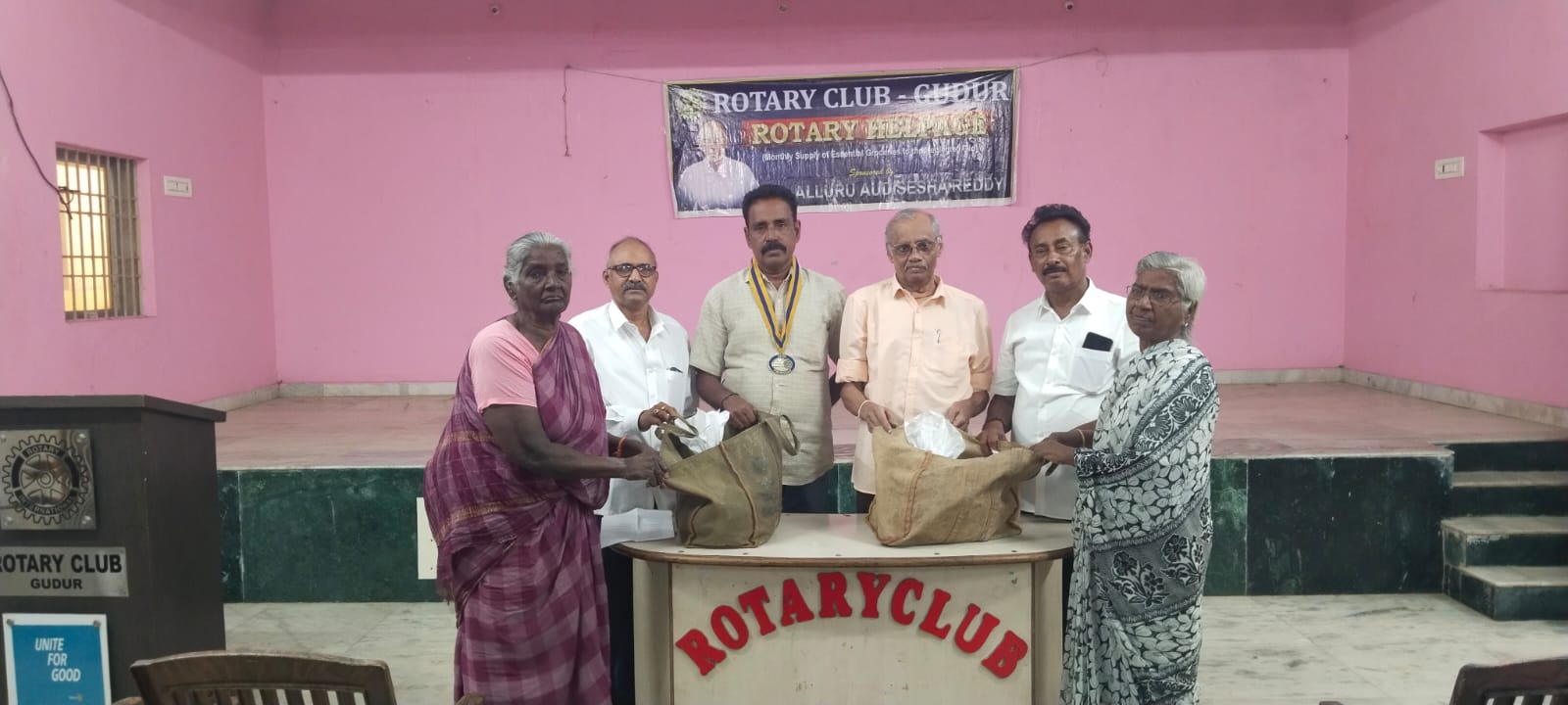 గూడూరులో రోటరీ క్లబ్ ఆధ్వర్యంలో హెల్పేజ్ కార్యక్రమం – లబ్ధిదారులకు బియ్యం, ఫల సరుకుల పంపిణీ